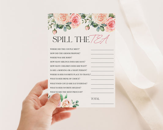 50 Spill The Tea Party (50-Cards) Fun Bridal Shower Game Activity, Who Knows the Bride Best, Decorations, Engagement Party, Rehearsal Dinner, Bridgerton