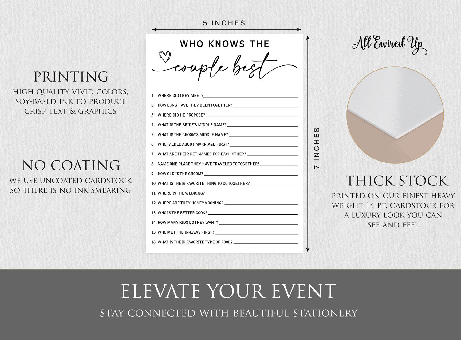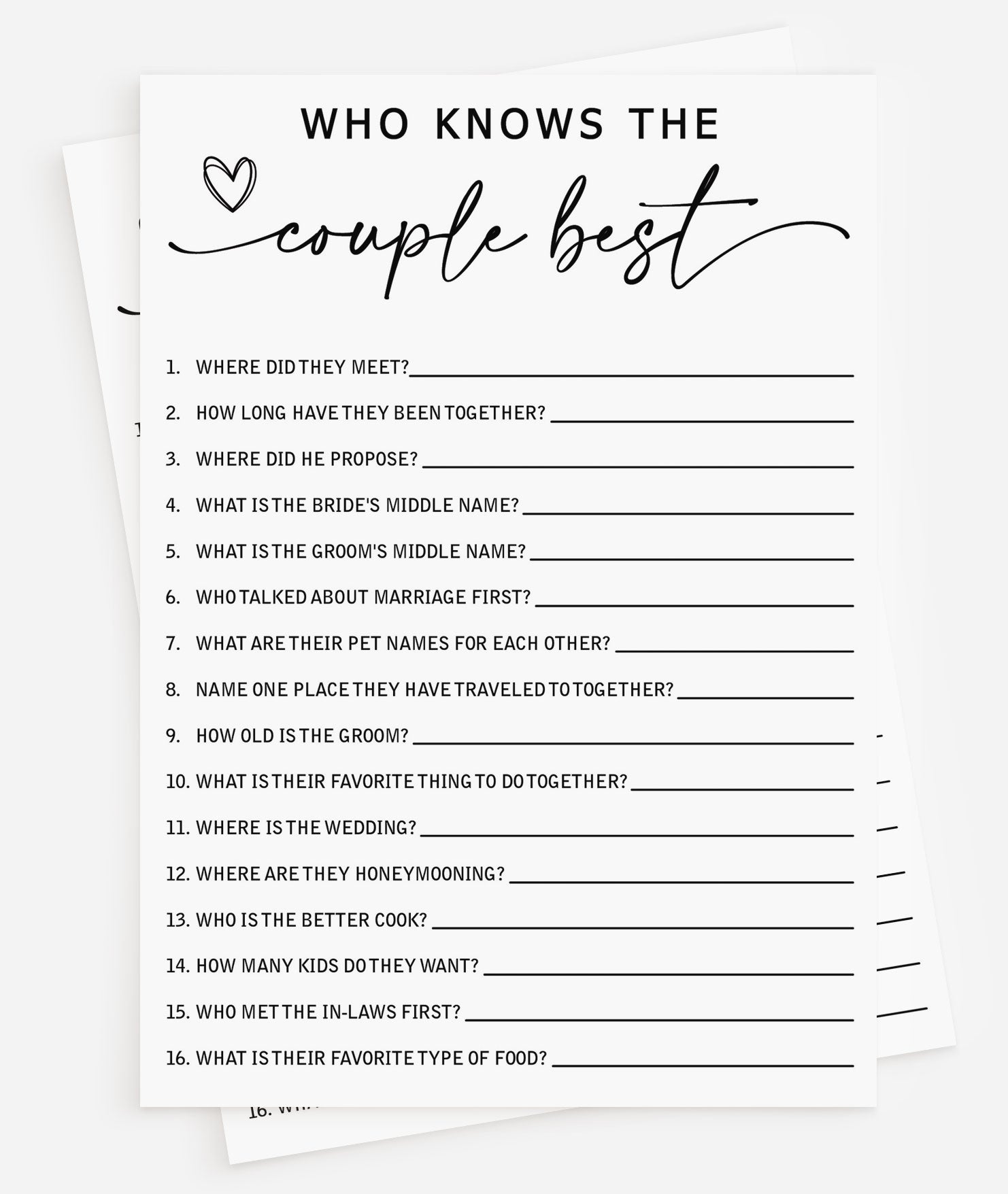 50 Who Knows the Couple Best? Wedding, Bridal Shower Game (50-Cards) Minimalist Script